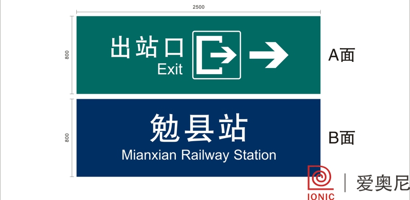 下圖是愛奧尼標識設計公司為勉縣火車站制作的靜態標識。客戶對項目制作工藝非常滿意。湖南愛奧尼標識工程有限公司是一家標識設計、制作公司,擁有15年標識設計經驗,100多名專業生產團隊,獲得ISO9001質量管理體系認證等數10項榮譽資質證書,電話:400-0731-050